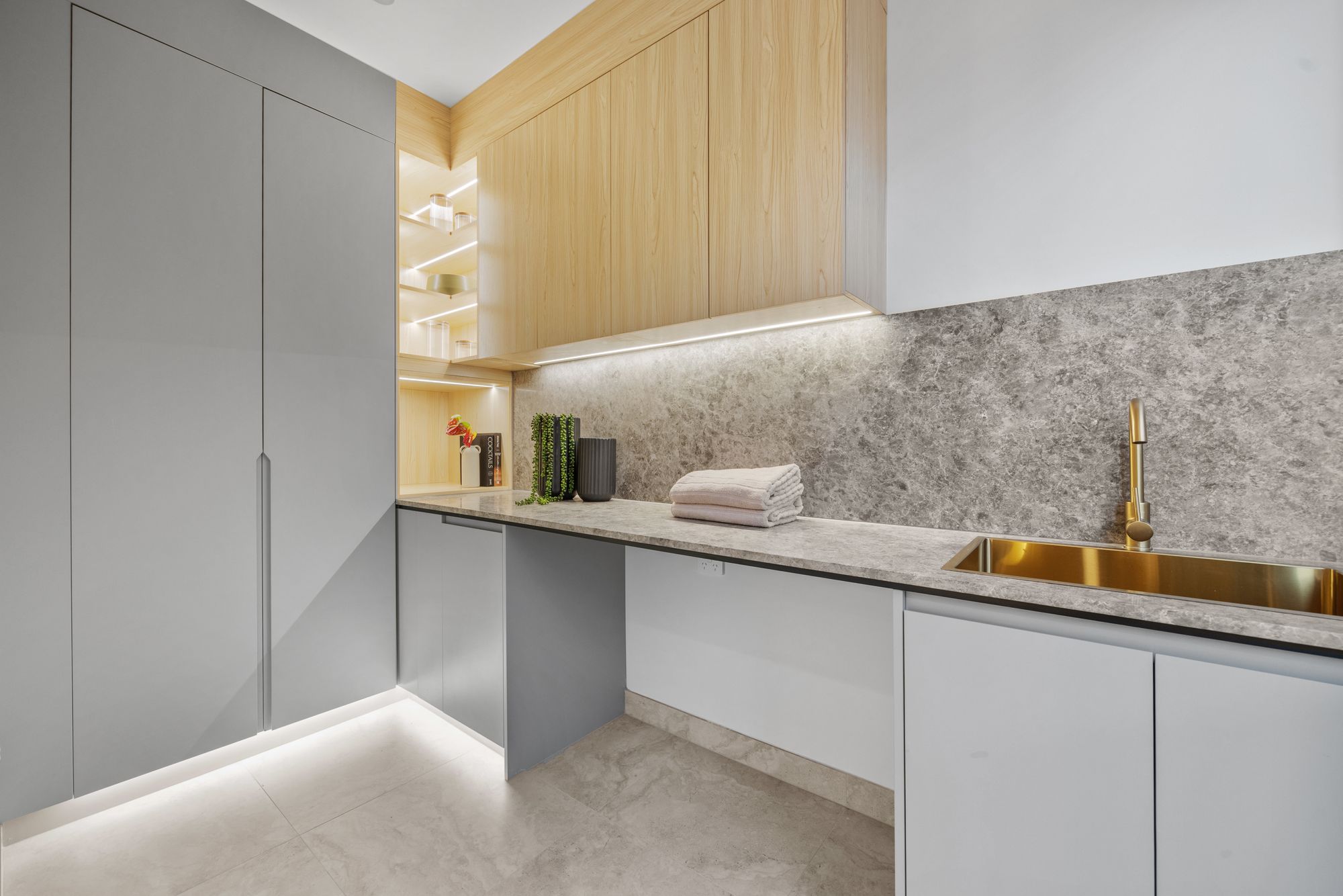 A stunning private residence in Glen Iris featuring Sara Stone Tundra Grey. The soft grey tones and natural texture of the stone create a refined and contemporary look, adding depth and character to the home’s interiors.