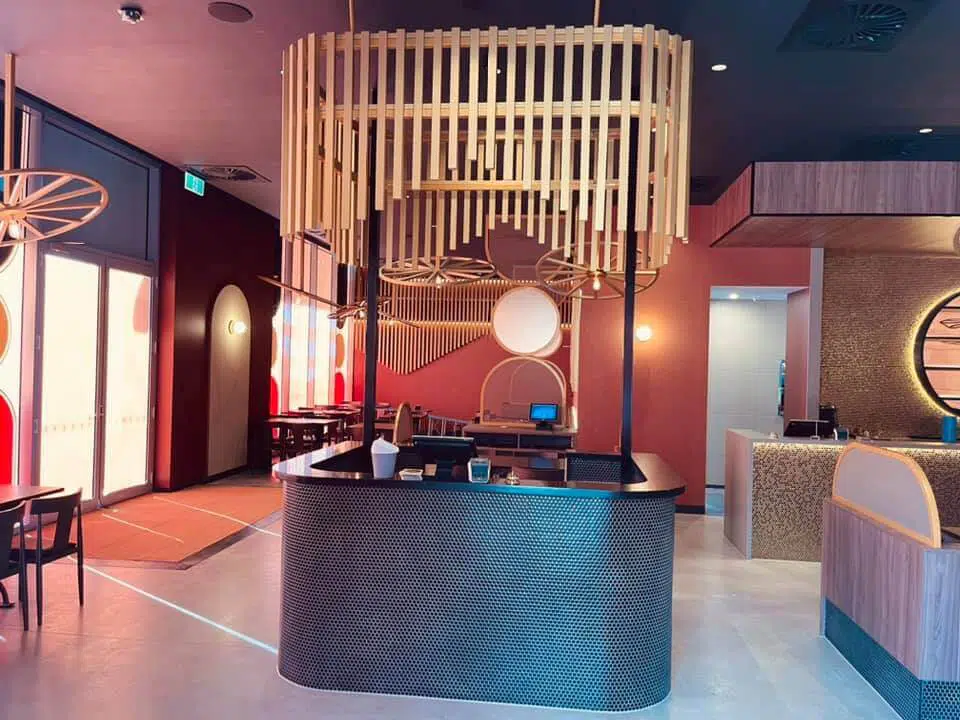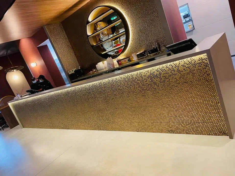 Our conversations with the client provided us with a really clear brief for the dramatic restaurant revamp. We were then able to bring this vision to life by installing Black Sky and Concreto Light benchtops made from Lithostone in their Kesari restaurant at Woodlea, bringing a striking and sophisticated sparkle to the space.