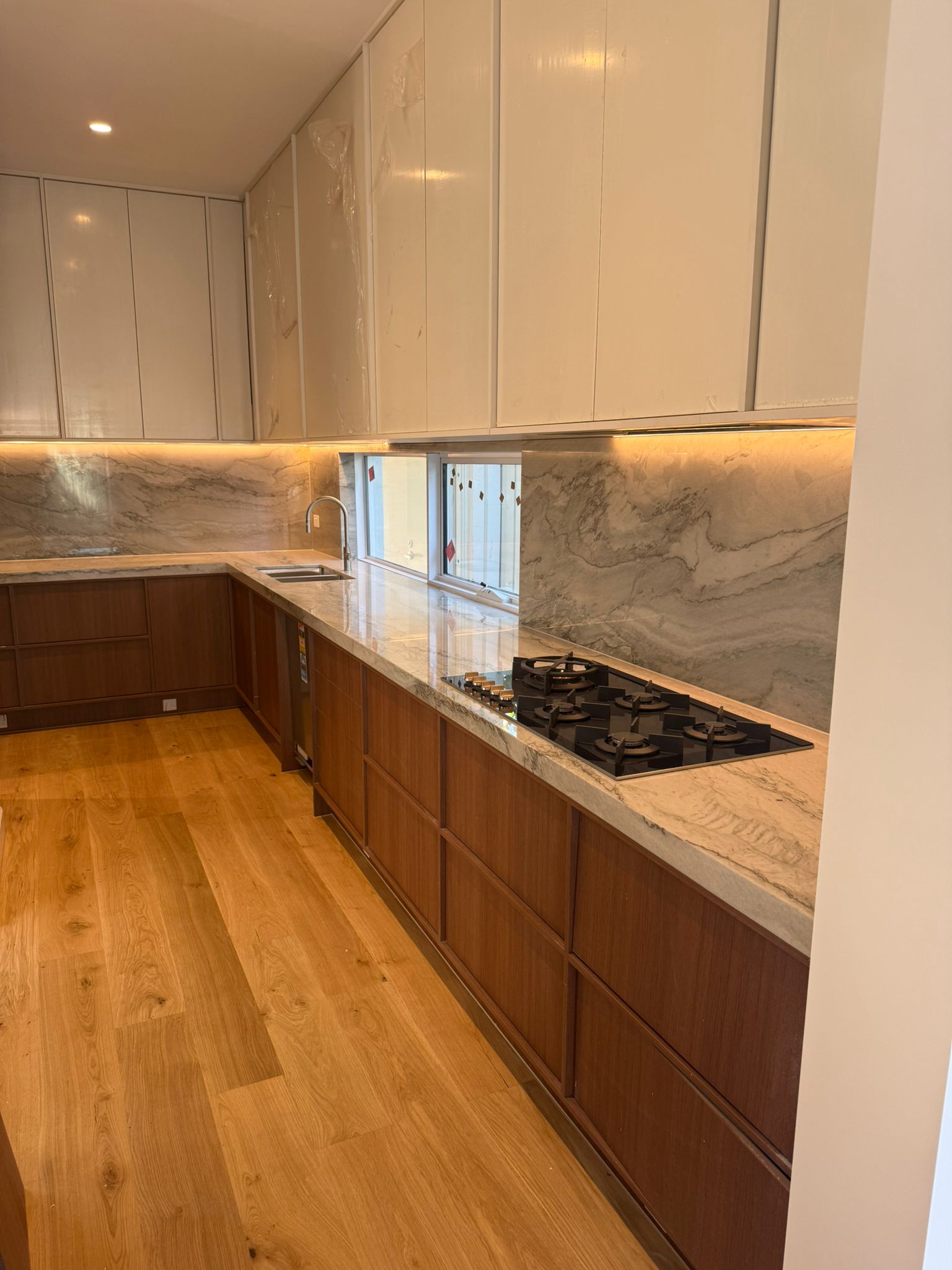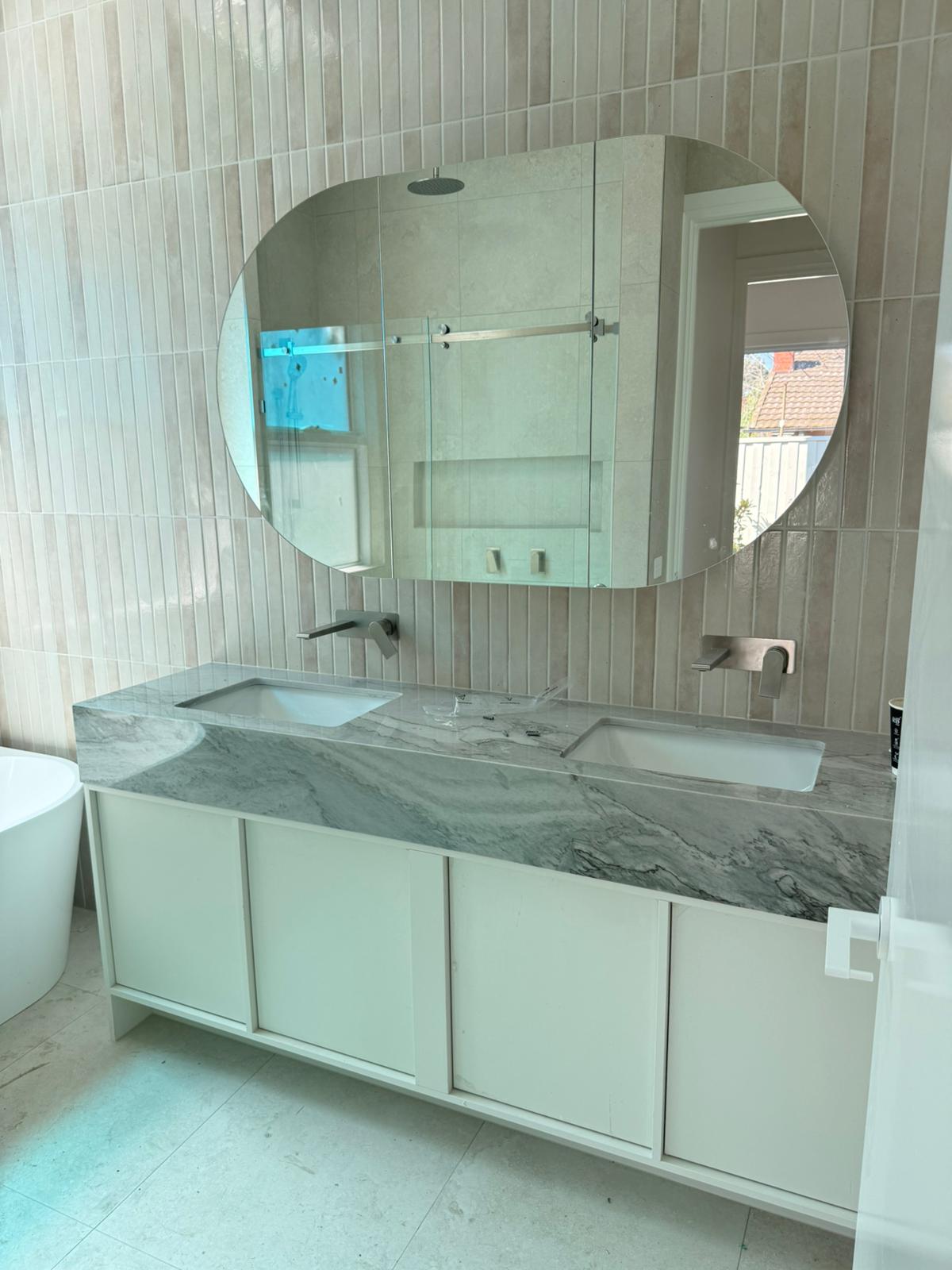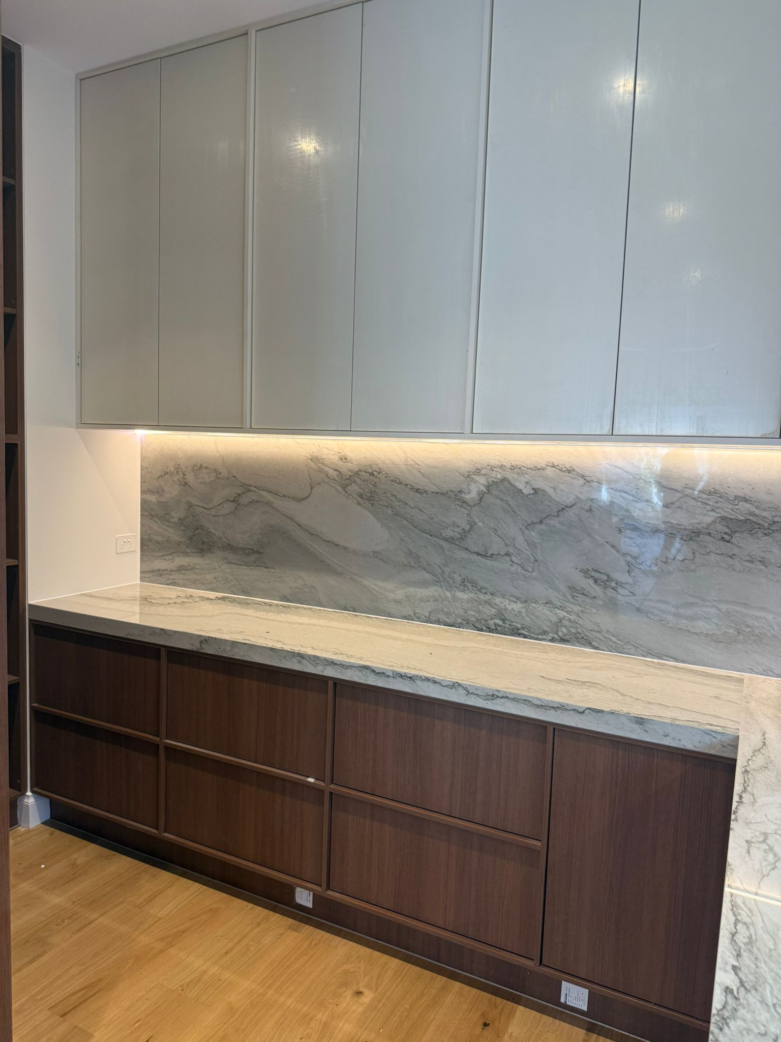 Stonaa managed the entire process from slab selection and layout planning to precision fabrication and seamless installation. Careful vein matching and edge detailing ensured visual continuity across benchtops and vertical applications. Particular attention was given to achieving clean joins, structural stability, and a polished finish suited to modern residential living.