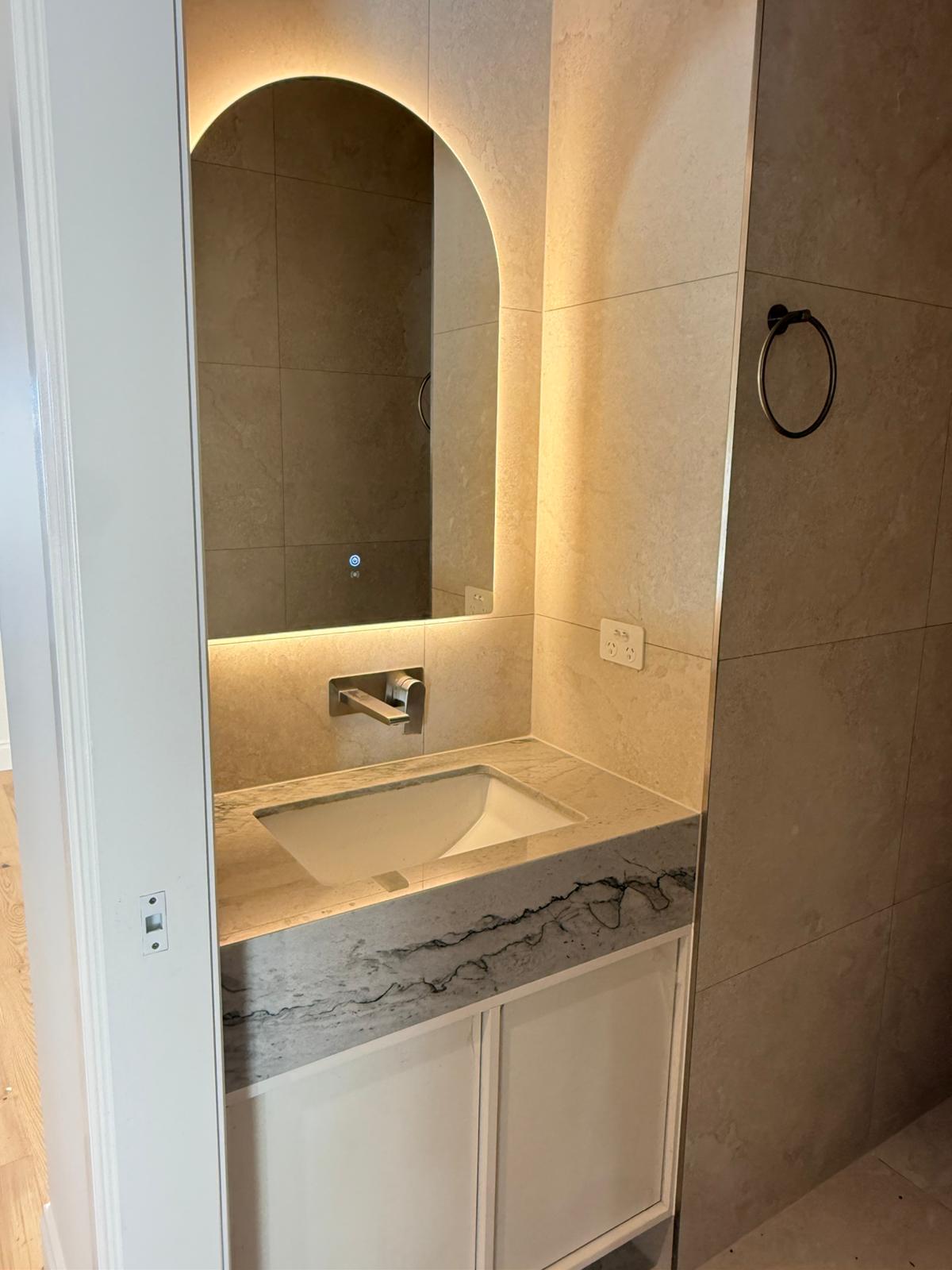 A recently completed project in Fitzroy, Melbourne, showcases a refined combination of Marella Granite and Mont Blanc Marble, carefully selected to create a cohesive and elegant interior finish.