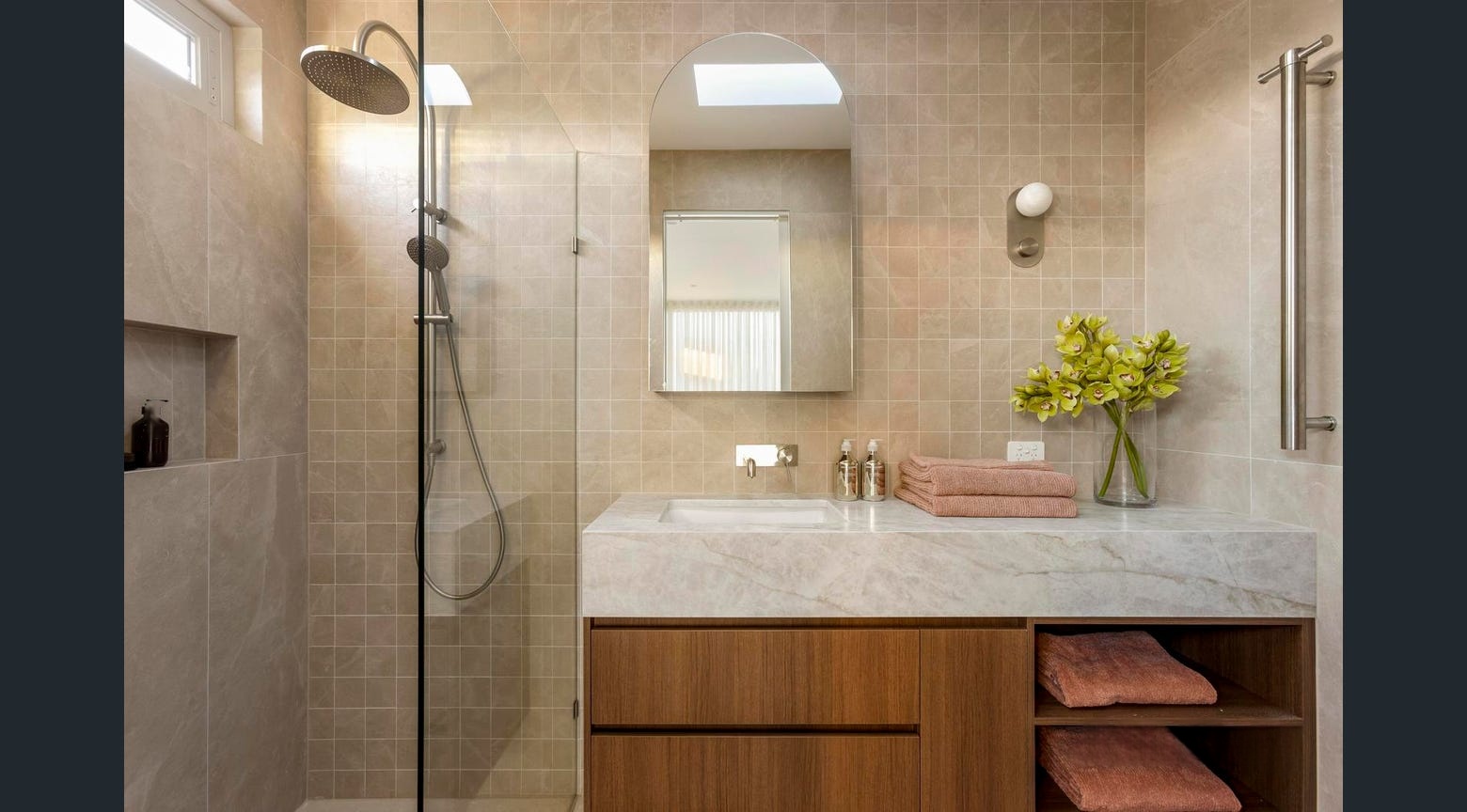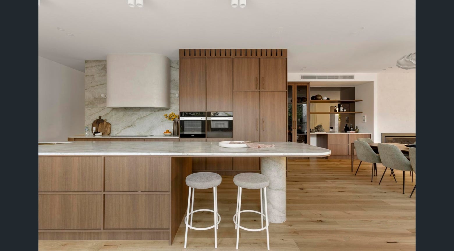 Stonaa managed slab selection, fabrication, and precise installation across all zones, ensuring seamless transitions, vein alignment, and structural integrity throughout the home. The result is a cohesive natural stone solution that enhances both functionality and design across this premium Northcote residence.