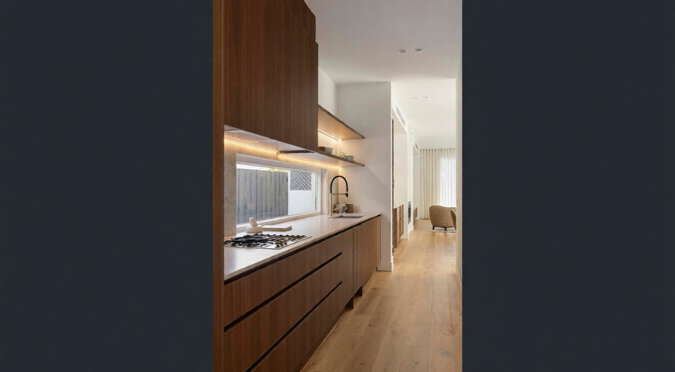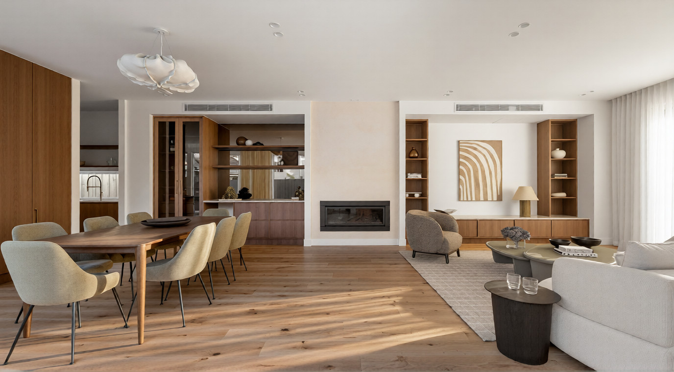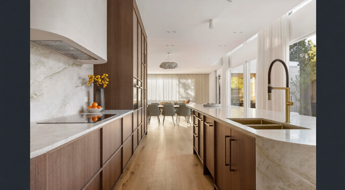 A recently completed Northcote project, built by Sigma OZ Homes, showcases a refined selection of premium natural stones across multiple living spaces.